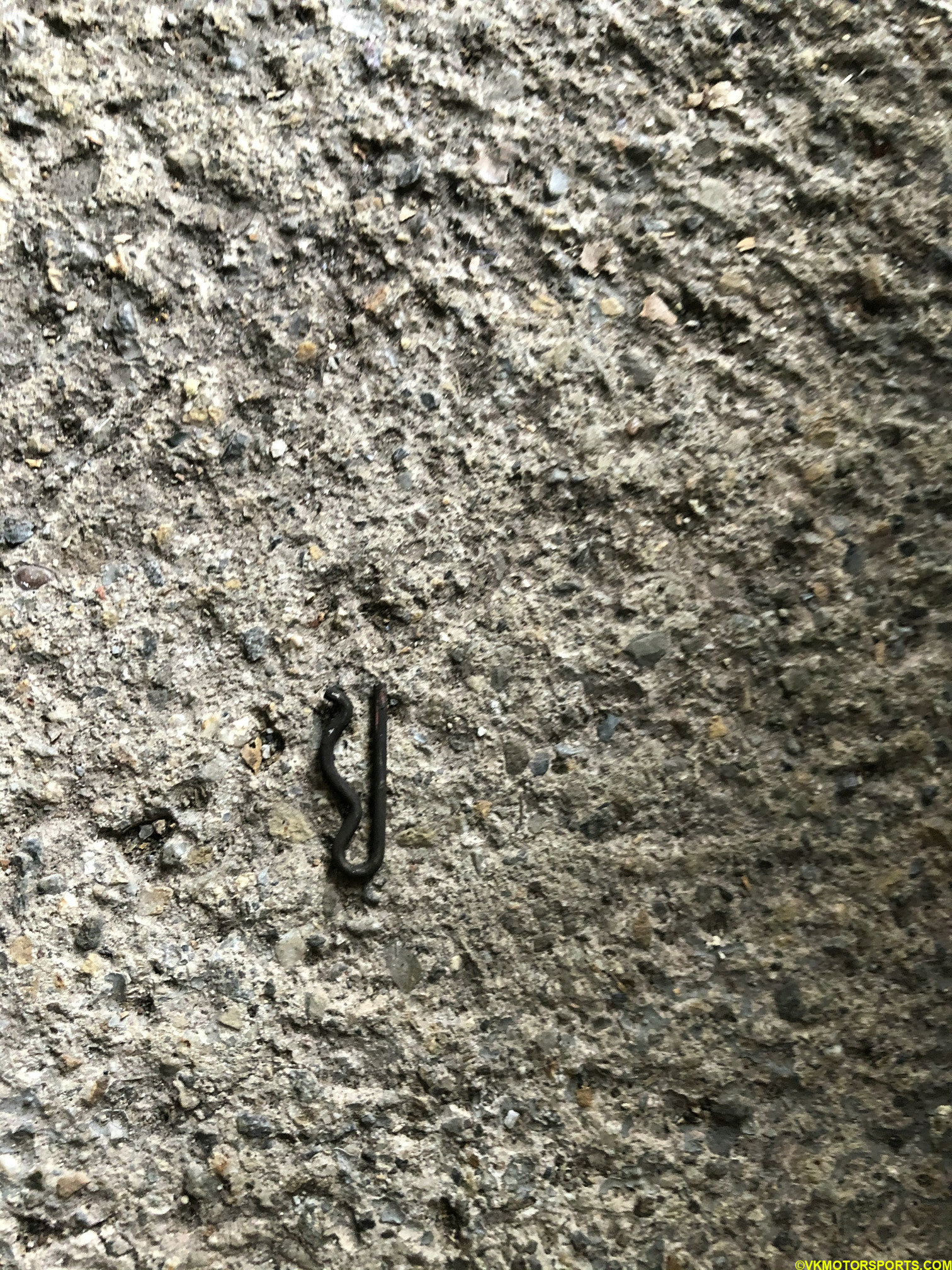 Step 5: Remove the small hairpin-like retaining clip that sits in with heavier retaining pin that holds the brake pads in position as seen in Figures 6 and 7.