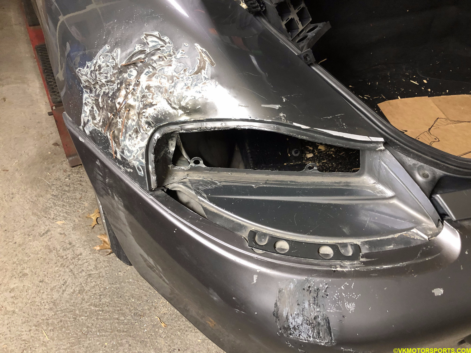 The Porsche Boxster S I purchased had a salvage title because it had a massive dent in the left rear quarterpanel, as shown in Figure 1, and a broken tail light. Fixing dents on a car requires real talent and experience, neither of which I had. Nevertheless, I gave it a try in late 2019 by buying a hammer and dolly, and a stud welder set. However, I failed to achieve a good result so ended up giving up after some effort. About 14 months later, in 2021, I decided to hire a cheap body shop guy off CraigsList to get it fixed up so I could make the Boxster my daily driver going forward. I had sold my actual daily driver, a 6-speed manual transmission 2017 VW GTI S, since I was not driving it due to the pandemic.