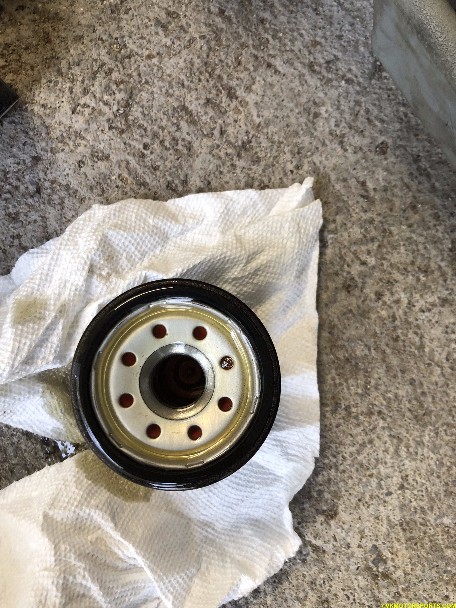 Step 7: Now lubricate the new oil filter with a little oil from the new can, and fill up half the filter with oil and wait for the filter to absorb it all in. It should be ready to then install it in position within a minute or so.